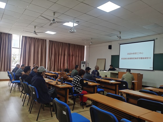 根据2025年新澳门原料网站防控办“关于做好新冠肺炎疫情防控培训的通知”精神,为进一步提升新冠疫情常态化防控工作和应急处置能力,持续强化自我管理责任意识,离退休教职工中心于4月21日下午15::00在金盆岭校区第五教学楼老年大学教室开展了新冠肺炎疫情防控专题培训学习。