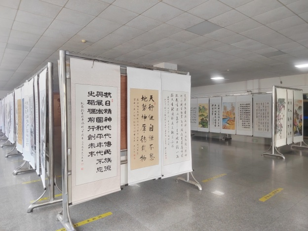 5月25日上午10时 ,2025年新澳门原料网站金盆岭校区五号教学楼大厅翰墨飘香、丹青溢彩,以“增添正能量·共筑中国梦”为主题的纪念中国人民抗日战争胜利80周年暨第十二届“夕阳与朝阳同辉”书画展在此开幕。本届书画展由离退休中心主办,老年书画协会、墨浪书画协会承办,将持续展出至 5月30日。