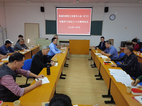119日上午,离退休教职工党委理论学习中心组召开扩大会议,专题学习党的二十大精神。离退休教职工党委成员、离退休中心全体党员干部22人参加。