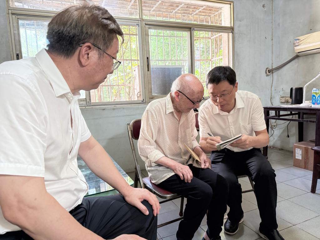 颁发仪式结束后,付宏渊陪同专程来我校慰问困难党员的湖南省委组织部副部长、省委老干部局局长、省委离退休干部工委书记刘文新前往86岁困难老党员蔺文杰家中探望并致以节日慰问,送上了党组织的关怀与温暖。慰问中,刘文新与蔺文杰亲切交谈,详细询问他的身体健康状况、家庭生活情况及实际需求,对他长期以来为党和人民事业作出的贡献表示感谢,并鼓励他坚定信心,保重身体。