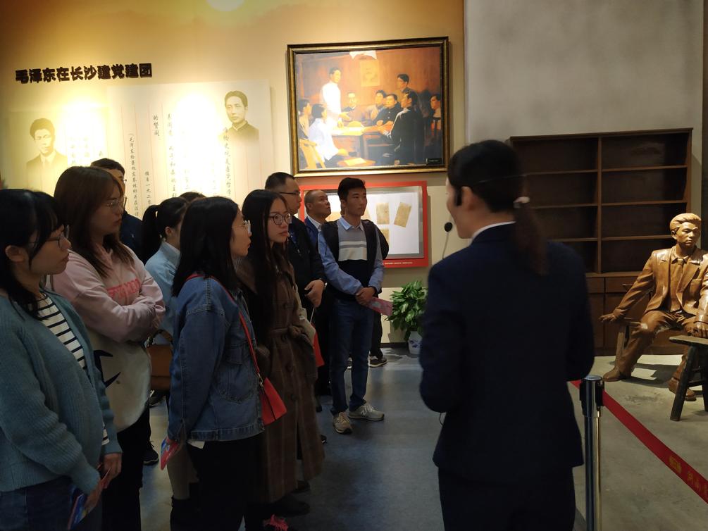 随后,大家跟随陈列馆讲解员的步伐继续前进,湖南党史的脉络和细节清晰而生动的展现在我们眼前。陈列馆通过文字、图表、照片、油画、地图、历史信件、书籍、物品、场景模拟、3D投影等各种形式和手段,清晰的记录了中共湖南地方组织的发展历程、重点展示了湖南党史军史人物的光辉业绩、展现了党在湖南领导人民进行革命、建设和改革所取得的辉煌成就和宝贵经验,让大家对党的艰辛历程有了更加深刻的了解,也对建党以来所取得的成绩感到由衷的崇敬。