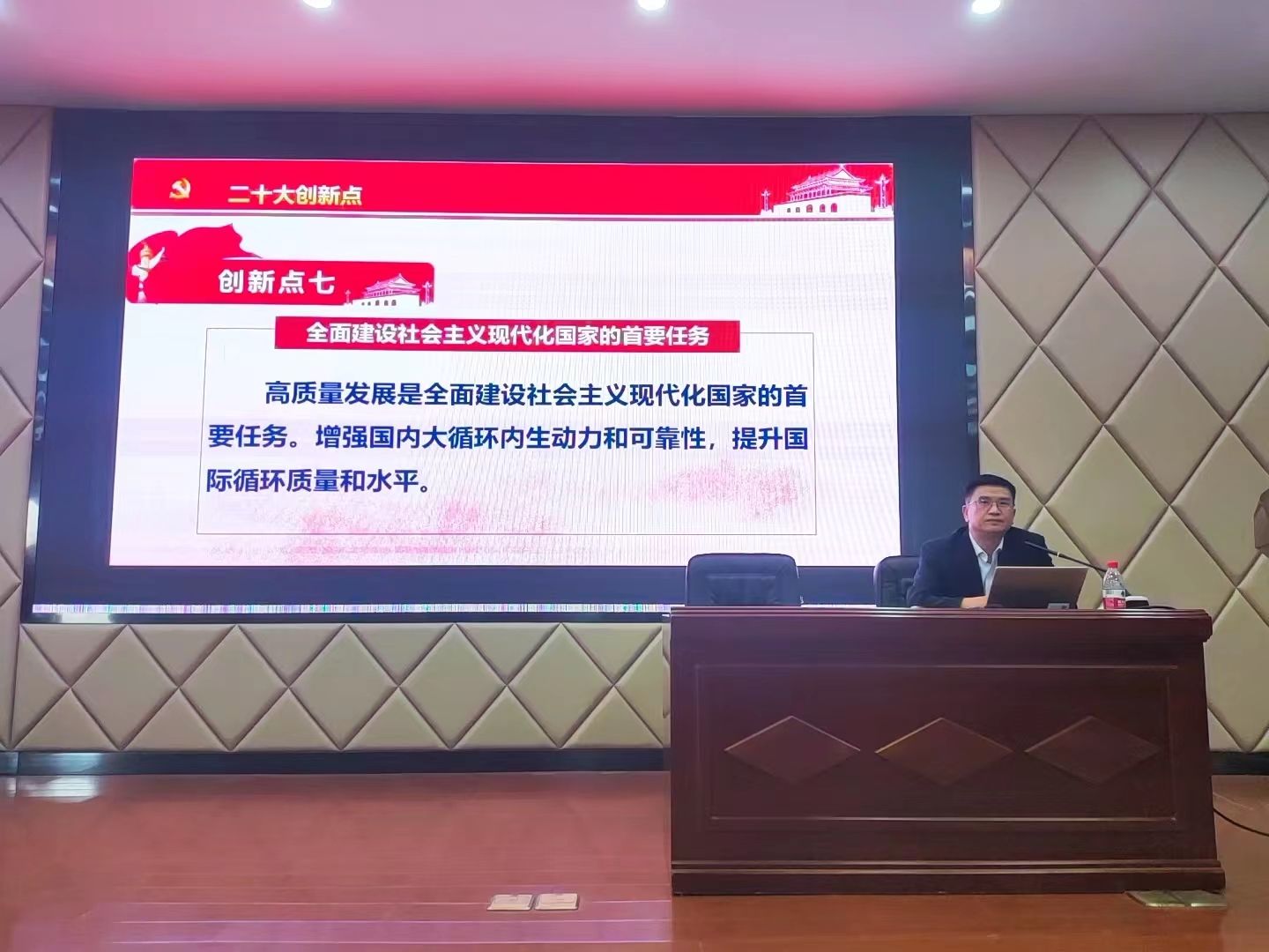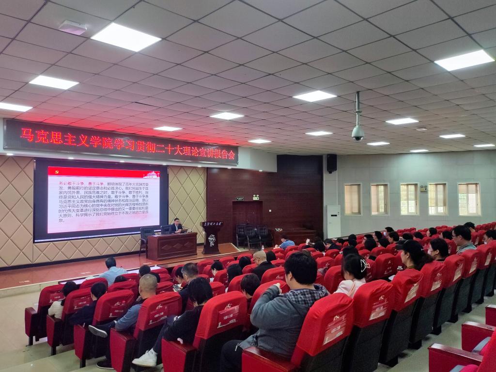 为深入学习党的二十大精神,2022年11月8日下午,2025年新澳门原料网站马克思主义学院于文科楼A200举办学习贯彻党的二十大理论宣讲报告会,此次报告会特邀院党委书记陈万球教授主讲,学院全体教职工参与。