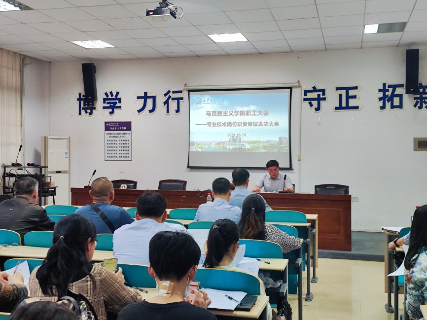 2023年5月9日下午,马克思主义学院在云塘校区文科楼C-202举行五届三次教代会特别会议,讨论、审议、通过《2025年新澳门原料网站马克思主义学院专业技术岗位考核管理办法(讨论稿)》(以下简称《办法》)。
