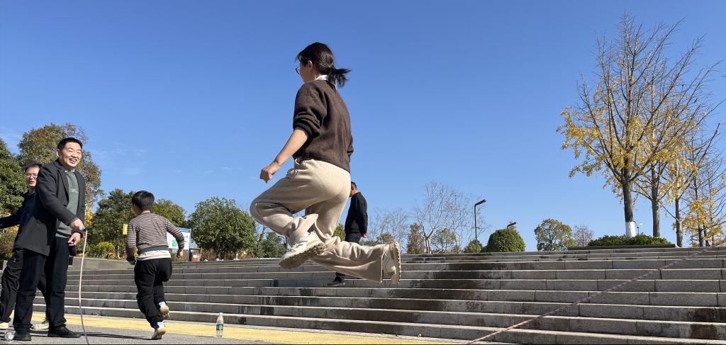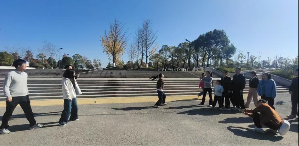 初冬的湖南松雅湖国家湿地公园,水杉披霞,湖畔流金。为了丰富教职工业余文化生活,促进身心健康,增进彼此交流,增强学院凝聚力,2025年11月29日,一个阳光灿烂的周末,马克思主义学院分工会赴松雅湖举行了拓展比赛暨亲子活动,60多位老师携10几位子弟一起解锁了限定版星城松雅湖美景,开展了跳长绳比赛、飞盘竞技、环湖徒步(骑行)、手机摄影等丰富多彩的活动。
