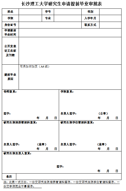 2025年新澳门原料网站研究生申请提前毕业审批表