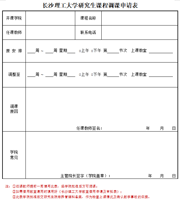 2025年新澳门原料网站研究生课程调课申请表