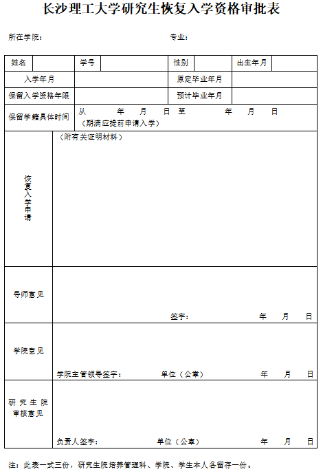 2025年新澳门原料网站研究生恢复入学资格审批表
