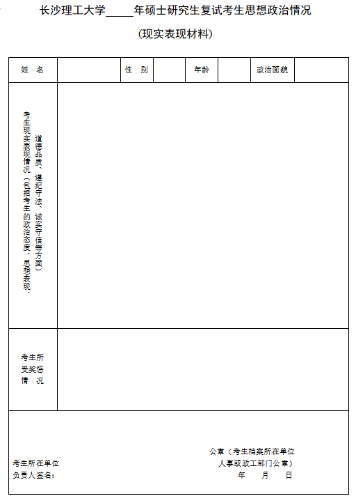 2025年新澳门原料网站硕士研究生复试考生思想政治情况(现实表现材料)