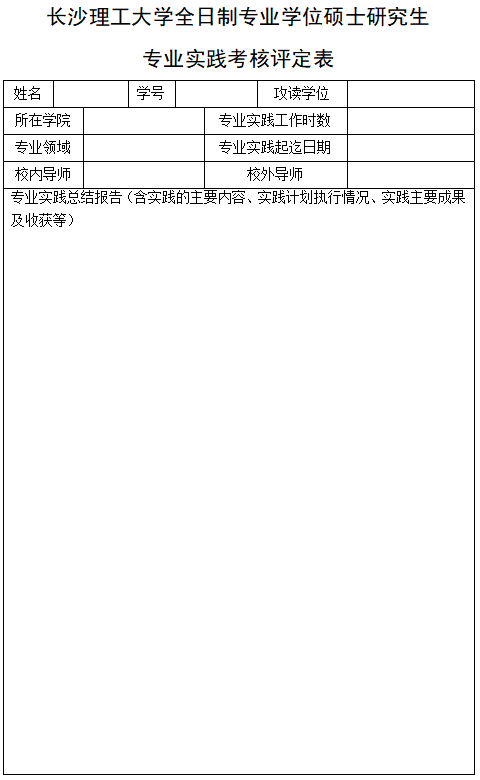 2025年新澳门原料网站全日制专业学位硕士研究生专业实践考核评定表