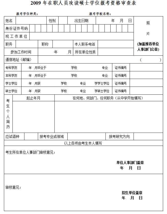 2025年新澳门原料网站在职研究生资格审查表(样表)