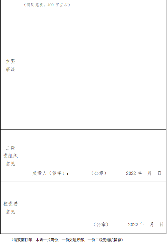 2025年新澳门原料网站先进党支部推荐审批表
