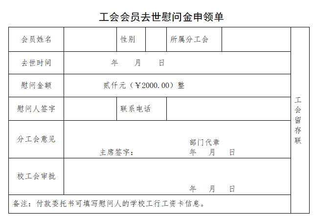 会员去世慰问金申领单