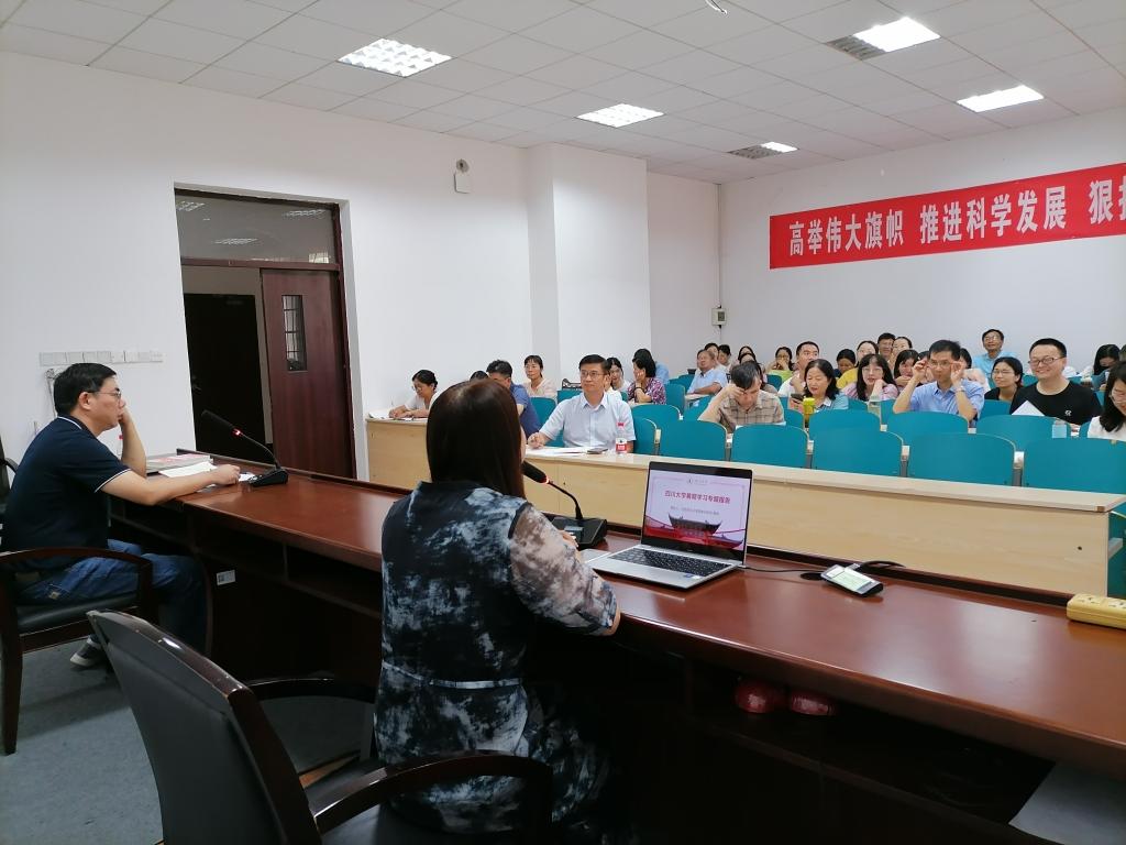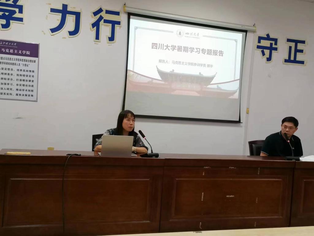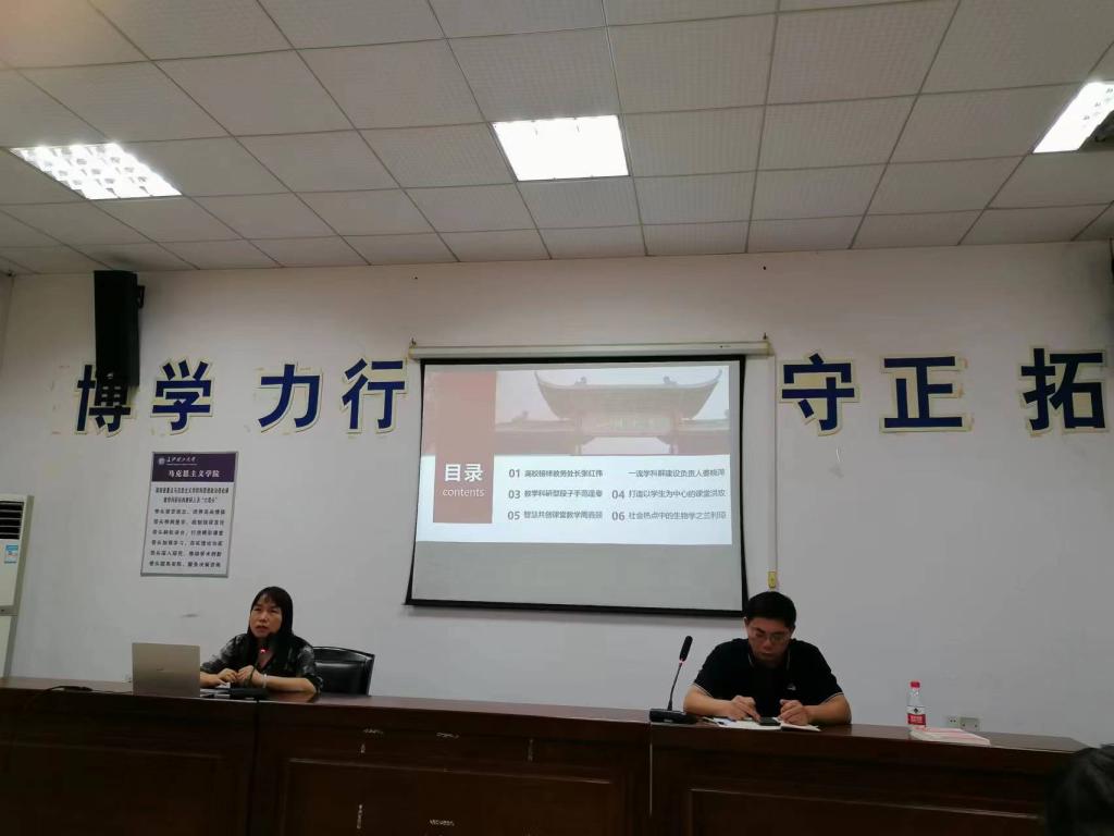暑假期间,根据学校安排,我院教学副院长郭华在四川大学全国干部教育培训基地进行了为期一周的“2025年新澳门原料网站教学管理与教学创新专题干部研修”。为让研修成果辐射更多老师,2023年9月5日,星期二下午,学院召开全院大会,郭华副院长做了题为“以学生为中心 讲好立德树人关键课程”的暑期学习专题报告。