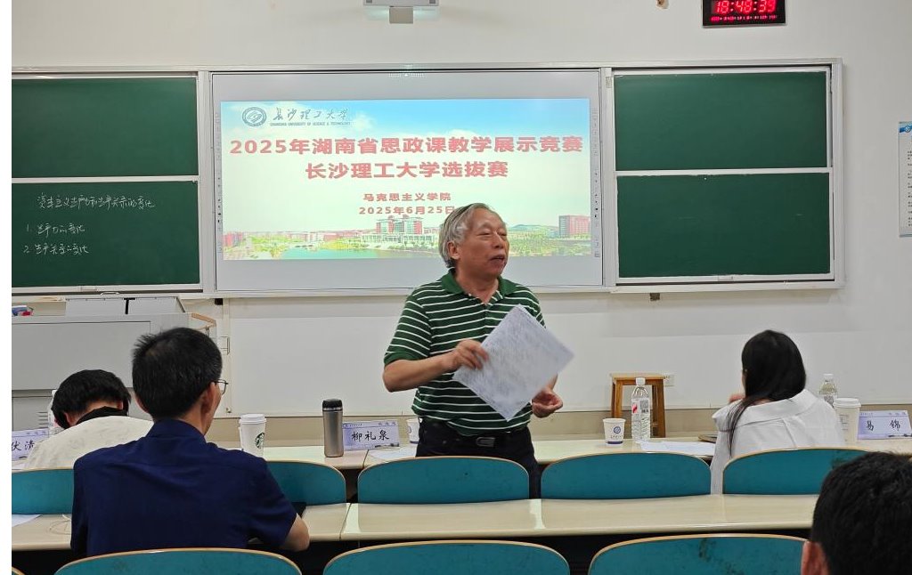 为深入学习贯彻党的二十大和二十届二中、三中全会精神,贯彻落实习近平总书记在全国教育大会上的重要讲话以及关于学校思政课建设的重要指示精神,马克思主义学院于2025年6月25日成功举办了湖南省思政课教学展示竞赛校级选拔赛。本次赛事以“提升课堂育人实效、激发教学创新活力”为核心目标,聚焦教师教学能力培养,精心搭建起教学交流与专业成长的双向互动平台。