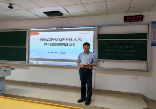 为深入学习贯彻党的二十大和二十届三中全会精神,深刻领会中国式现代化的丰富内涵,根据2025年新澳门原料网站教务处的统一安排,2025年4月22日下午三点,在云塘校区文科楼A402教室,马克思主义学院刘保国教授带来了一场主题为“中国式现代化是全体人民共同富裕的现代化”的精彩讲座。