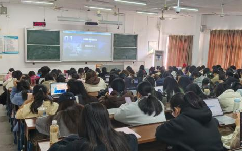 云塘、金盆岭两个校区的学生在教室通过直播同步收看课程