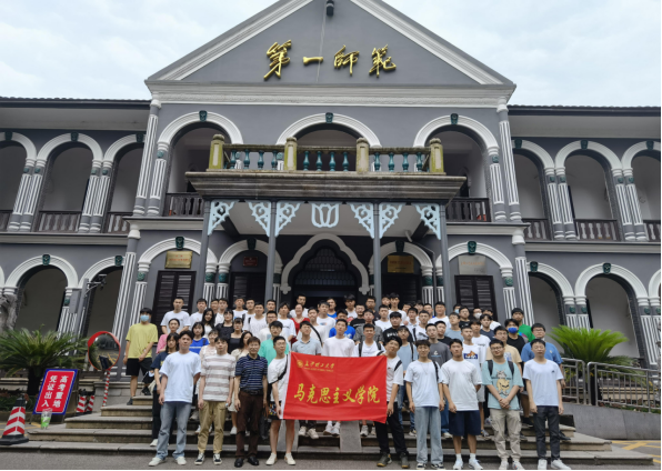 本次实践教学活动的第二个环节是重点参观毛泽东与第一师范纪念馆,了解一代伟人是怎样从这里起步的。在纪念馆第三展厅,看到毛泽东与杨昌济、毛泽东与《新青年》、毛泽东的《体育之研究》的图片,同学们感受到一百多年前新文化运动在第一师范校内引起的思想解放潮流。在第五展厅,毛泽东领导湖南自治运动、领导参与成立文化书社和俄罗斯研究会等共产党地方早期组织、直至参加中国共产党第一次全国代表大会,展示了马克思主义是如何在一件件历史事迹的推动下,在中国大地上广泛传播开来的。