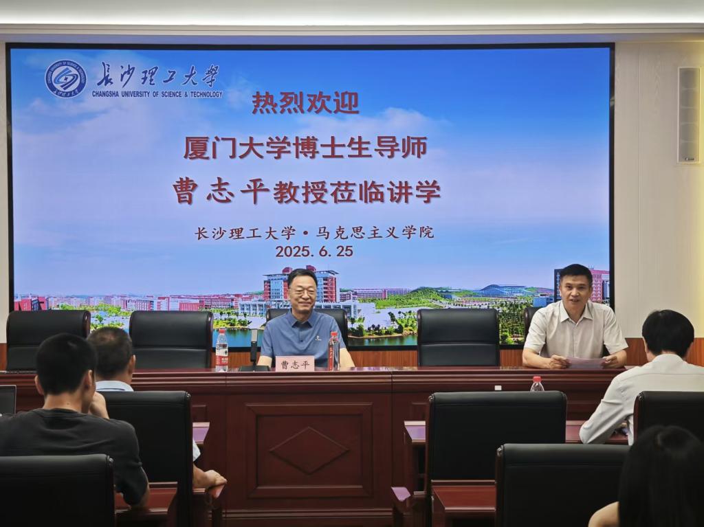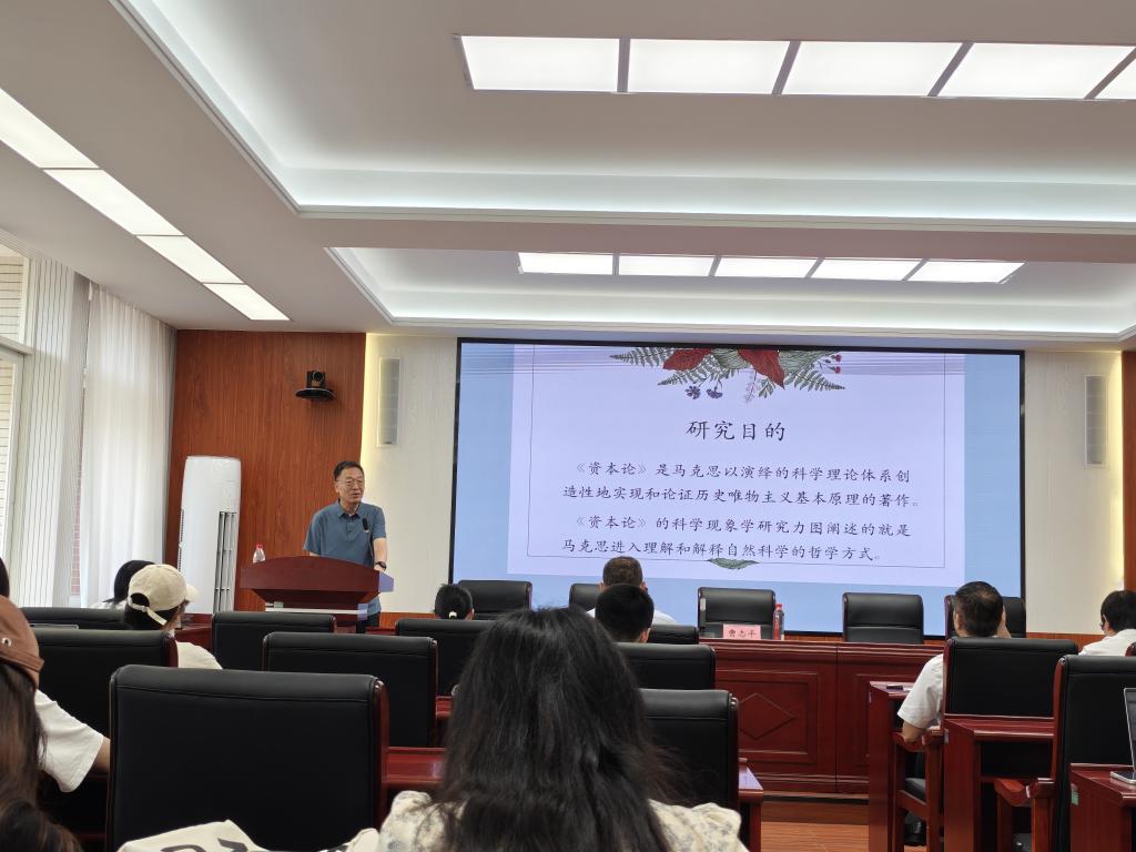 2025年6月25日上午,原教育部高校哲学类专业教指委委员、厦门大学马克思主义学院博士生导师曹志平教授应邀莅临马克思主义学院,在我校云塘校区文科类B501会议室为我院师生带来了一场主题为“《资本论》的科学现象学”的精彩学术讲座。本次讲座由学院党委书记陈万球教授主持,文贵全副院长,教授委员会主任余乃忠教授,章雁超博士、郭蓉博士、向谨汝博士等学院部分教师及23级、24级部分研究生参加了讲座。