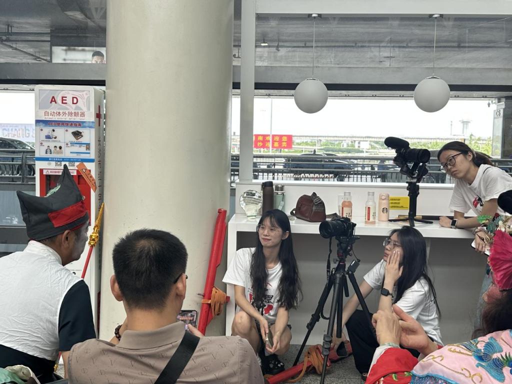 高跷铿锵,童声清越。2025年6月28日上午,在长沙黄花机场的特别展演区,汨罗长乐抬阁故事会的省级非遗传承人陈意清会长,正带领着他的小孙女以及长乐镇中心小学的孩子们,踩着传统高跷,演绎流传千年的故事篇章。孩子们灵动活泼的表演,吸引了众多旅客驻足。2025年新澳门原料网站暑期实践团队的镜头,正专注地记录着这古老技艺在新时代焕发的勃勃生机。