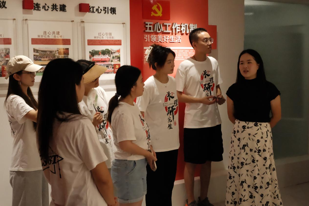 随后,在社区工作人员引导下,实践团实地参观了社区创新构建的“一中心三站点”立体化党群服务中心体系。工作人员边走边讲解:“‘一中心’是我们的主阵地,‘三站点’则延伸至各网格小区,确保把优质课程、丰富活动和贴心服务精准送达居民家门口。”