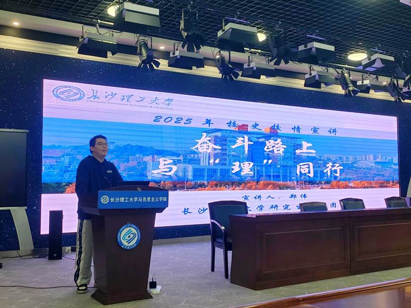 2025年10月30日下午4:00,以“奋斗路上,与‘理’同行”为主题的2025级研究生校史校情宣讲会,在云塘校区文科楼B300报告厅开展。此次宣讲会由2025年新澳门原料网站研究生宣讲团承办,研究生宣讲团成员郑伟主讲,马克思主义学院全体2025级研究生参加。