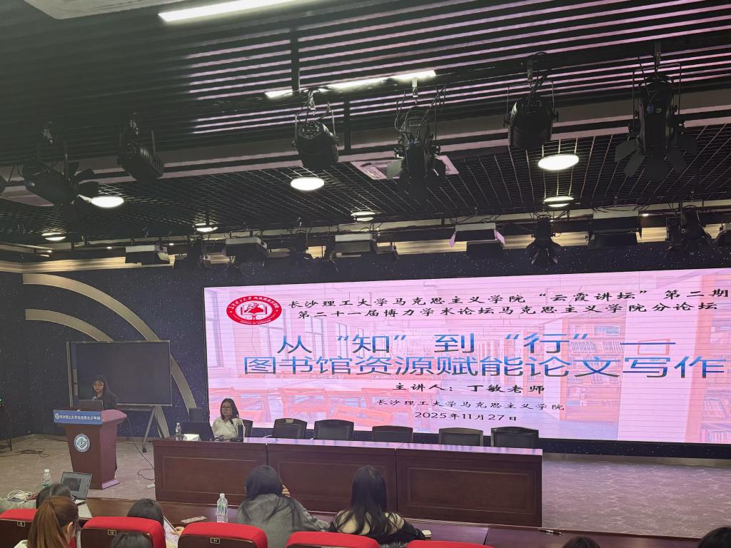 2025年11月27日下午2:30,2025年新澳门原料网站马克思主义学院“云霞讲坛”第二期暨第二十一届博力学术论坛马克思主义学院分论坛在云塘校区文科楼B300报告厅顺利举行。本期讲坛特邀马克思主义学院青年教师丁敏博士担任主讲嘉宾,由马克思主义学院研究生会学研部陈婷婷主持,马克思主义学院学工办主任曾蓓、2025级全体研究生及2024级部分研究生参加。