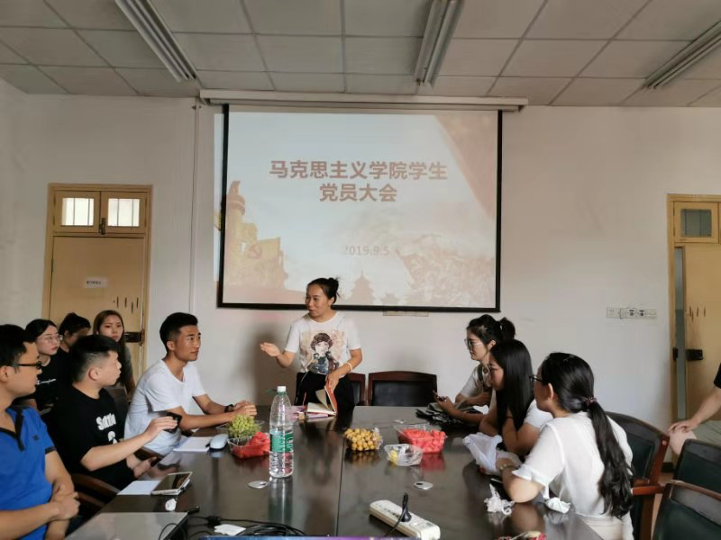 2019年9月5日上午九点在4教501,曾蓓老师主持召开马克思主义学院学生党员大会,出席此次会议的有2017级和2018级的正式党员及预备党员们。会议持续一个半小时,会议内容由四个部分构成。