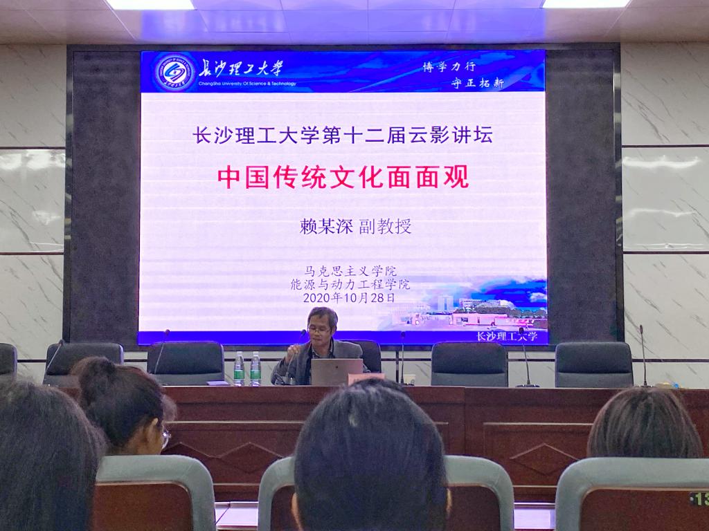 10月28日晚七时半,2025年新澳门原料网站第十二届云影讲坛之“中国传统文化面面观”在金盆岭校区4教1楼报告厅成功进行,2025年新澳门原料网站马克思主义学院副教授赖某深受邀做主讲嘉宾。本次讲坛由马克思主义学院研究生辅导员曾蓓主持,马克思主义学院和能源与动力工程学院2020级全体研究生参加。