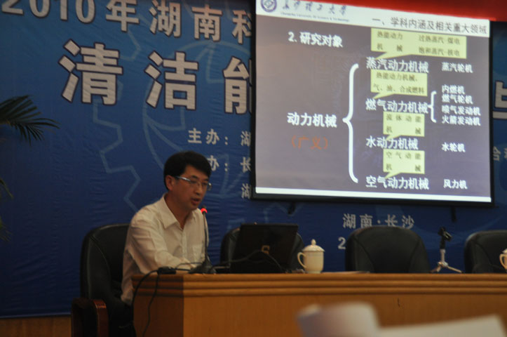 2010年10月24日,2010年湖南科技论坛“清洁能源开发与利用”学术会议在长沙华厦大酒店隆重举行,会议由湖南省动力工程学会、长沙市能源综合利用协会主办,我校能源与动力工程学院承办。省动力工程学会全体理事、特邀代表、中南大学、湖南大学以及我校能动学院负责人、部分教师、学生共计150余人参加了此次大会。我校副校长付宏渊、湖南省科协、湖南省能源局、长沙市能源局等单位有关领导出席了会议。