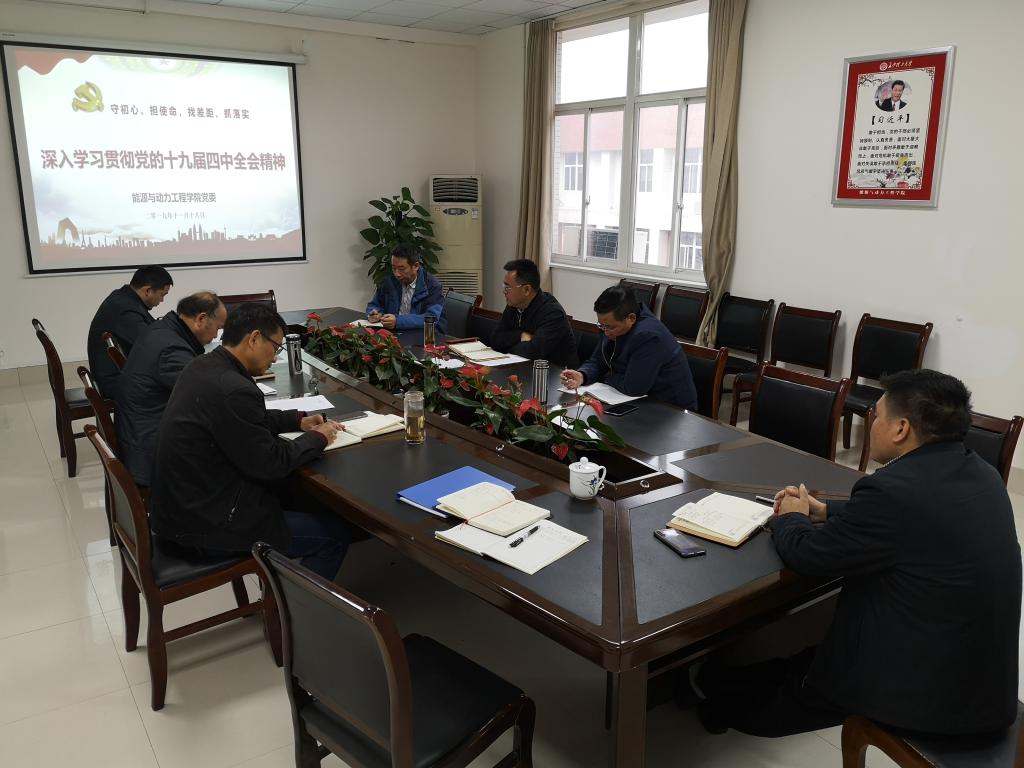党的十九届四中全会是在新中国成立70周年之际,在“两个一百年”奋斗目标历史交汇点上,召开的一次具有开创性、里程碑意义的重要会议。根据学校党委要求,能动学院党委以高度的政治责任感和使命感,将深入学习贯彻党的十九届四中全会精神作为一项重大的政治任务,精心组织,周密部署,系统安排,形成了良好的舆论导向。