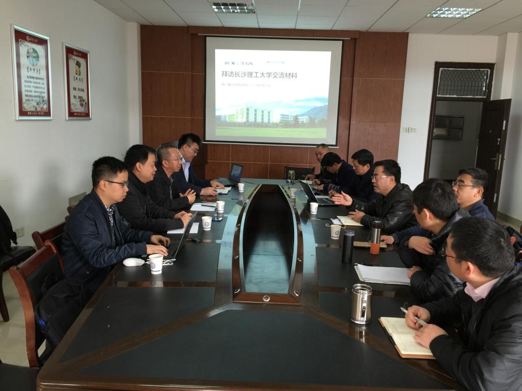 中广核核电运营培训中心党总支书记袁松、处长李劲光、主管贺永波、工程师谭翔分别介绍了中广核核电运营培训中心基本情况、仿真实训条件建设、核电人才联合培养意向。