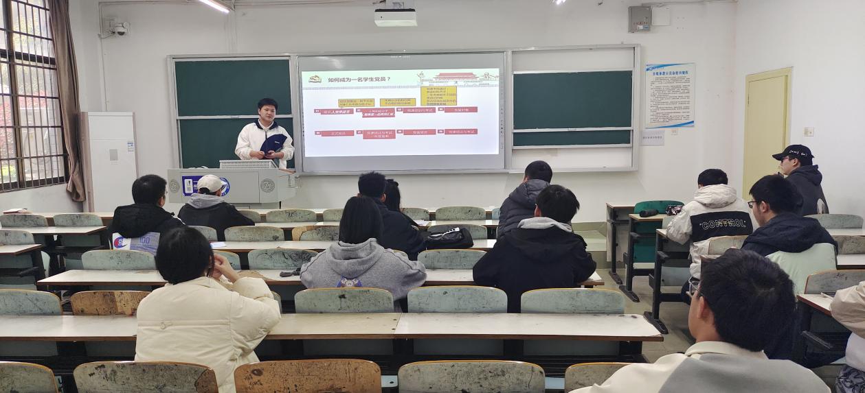 3月25日下午,汽车与机械工程学院学生党员发展服务中心部张琛、刘一诺、叶鑫在金盆岭校区六教101对22级各班团支书开展了关于入党流程以及2023年上半年入党积极分子推优工作会议。