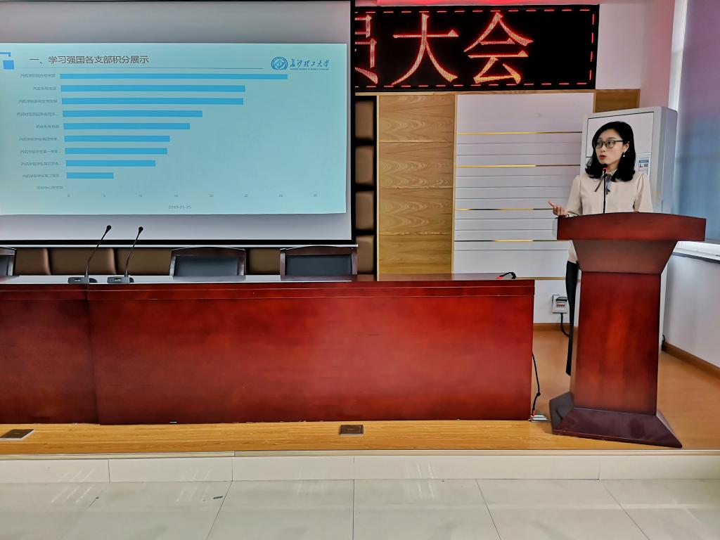 首先,周路路老师发表讲话,她围绕着本学期开学以来的两项主要工作——“学习强国”软件的学习及文明寝室的创建展开。关于“学习强国”软件的学习总结,周老师展示了各支部的学习数据对比、学习积分达标和未达标名单,以此,希望所有党员都重视起来,充分利用好“学习强国APP”来进行学习,扩充自己对于时事政治的了解,积累更多政治素养。接着,是关于文明寝室创建倡议。同时周老师列举了各支部获三次及以上优秀寝室党员名单和获两次及以上不合格寝室党员名单。她强调,作为党员,我们应该发挥好模范带头作用,在文明寝室创建中争创优秀寝室。另外,她强调,我们要继续积极开展本学期特色党支部相关活动,比如积极参与朋辈课堂、定期召开小组会议等。