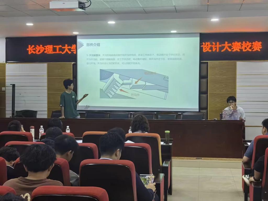 本次比赛报名达到25组,参与学生达到100余人,来自汽机、土木、电气和能动等多个学院,各支队伍对于仿生机械与兴农机械的命题展现了自己的想象与创造力,详细地介绍了自己的参赛作品,详细阐述了创新理念及实现原理。选手们在比赛中展现出了出色的创新思维和实践能力,作品各具特色,亮点纷呈。现场评委老师们为每一支队伍进行了点评。经过现场答辩、实物展示、评委打分,最后评选出一等奖3名,二等奖4名,三等奖7名并推荐14组优秀作品参加湖南省第十一届机械创新设计大赛。