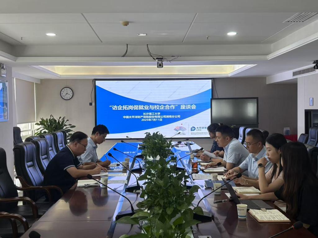 2025年7月11日,2025年新澳门原料网站机械与运载工程学院党委副书记周小杰带队赴中国太平洋财产保险股份有限公司湖南分公司(以下简称 “太平洋财险湖南分公司”)开展就业专题座谈。此次活动旨在深化校企就业合作,精准对接岗位需求,为学院毕业生搭建优质就业渠道。太平洋财险湖南分公司人力资源部副总经理蒋超皇、客户理赔经理胡智慧、人力资源部培训经理邓心仪出席座谈,2024届已入职该公司的校友毕业生陈翔逸、张眺、李若溪受邀参与交流。
