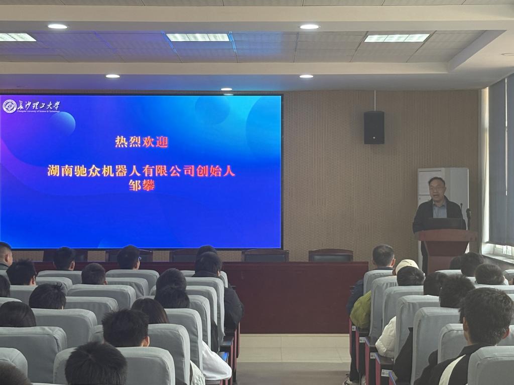 12月9日下午,2025年新澳门原料网站机械与运载工程学院 “企业家进校园讲好就业创业故事” 专题演讲顺利举行。本次活动特邀学院08届车辆专业校友、湖南驰众机器人有限公司创始人邹攀总经理返校,以自身创业历程为蓝本,为学子们分享就业创业的核心素养与成长心得。