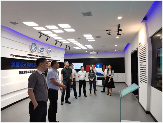 邓斌副教授首先向邳建东等介绍了洞庭湖的概况及所面临的机遇与挑战,洞庭湖实验室建设历程、主要研究方向,并重点介绍了智慧洞庭综合信息化平台。