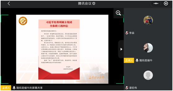 5月19日下午,水利工程学院以学习宣传贯彻习近平总书记给郑州圆方集团全体职工回信精神为强劲动力,团结组织全体职工在疫情防控和教学科研工作中更好发挥教师主力军作用,共克时艰,以座谈、腾讯会议等线上线下结合的方式掀起学习热潮,并结合自身实际和感想,展开了积极热烈的讨论。