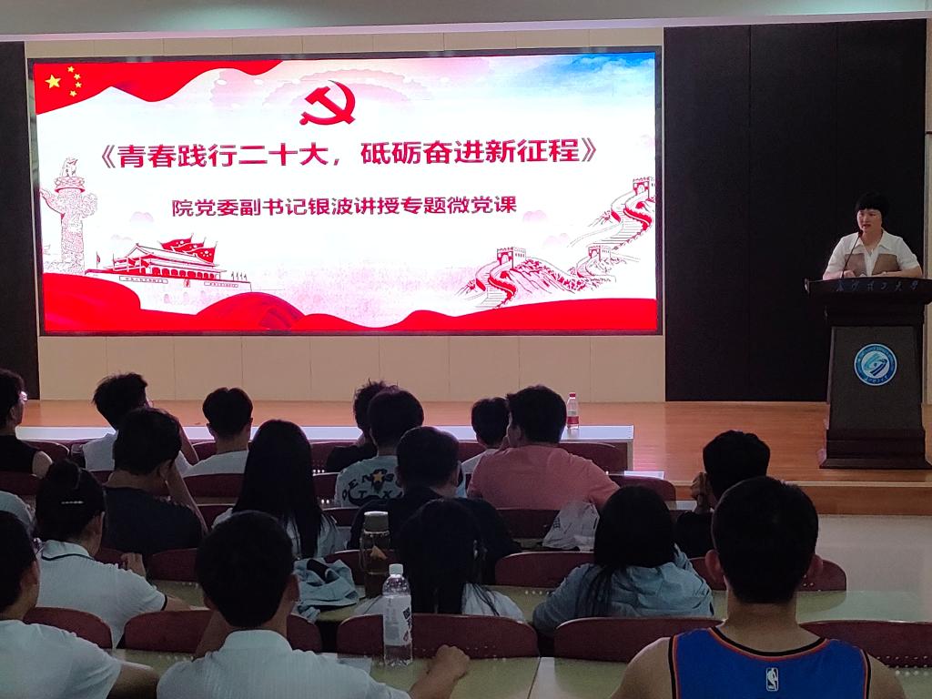 随后,银波以《青春践行二十大,砥砺奋进新征程》为题,讲授专题微党课。她指出在大学的四年间,学生党员们实现了从共青团员到中共(预备)党员的转变,在学院文明养成、学风建设、疫情防控等工作中敢担当、善作为,高度肯定了学生党员的付出和贡献。她寄语毕业生党员们要持续加强理论学习,坚定理想信念,做到以学铸魂、以学增智、以学正风、以学促干;要进一步强化身份意识,提高党性修养,不断用行动锤炼党性,培养良好的政治品格,树立明确的人生目标并为之艰苦奋斗,努力实现人生价值;要充分发挥模范作用,争当先锋表率,落实好党员责任制,站好最后一班岗,发挥学生党员在毕业生文明离校中的示范引领作用,秉持初心、笃然前行,做一个德才兼备的栋梁之才。