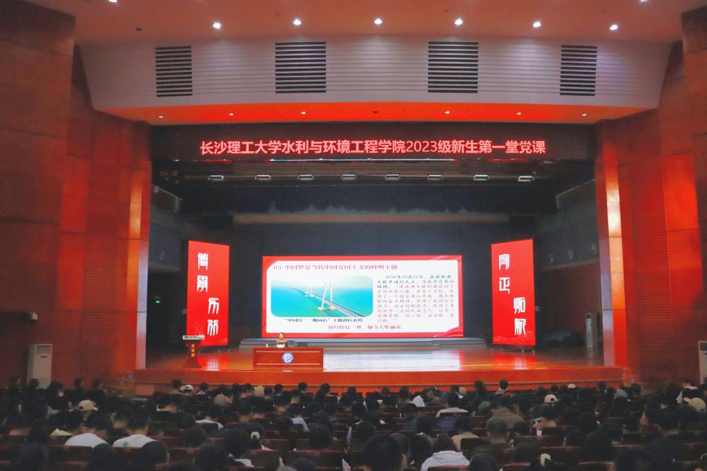 10月26日晚,水利学院在云塘校区大会堂举行2023级新生第一堂党课。院党委书记喻玲娜出席并授课,2023级辅导员黄婷、张海林及全体2023级本科新生参加,活动由党建辅导员綦丽主持。