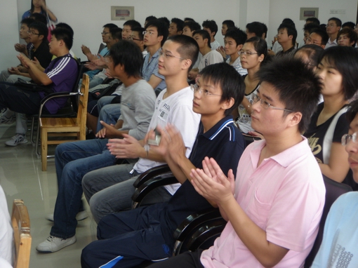 首先,王学成老师向全体新生介绍了翁常东、王刚两位同学。他们在全国首届水利创新设计大赛中分别获得了全国一等奖和全国二等奖的优异成绩。同时,王老师还详细地介绍了创新设计的具体情况,希望广大的09级新生能够踊跃参加此类大赛,把想法变成行动,把灵感化为作品。