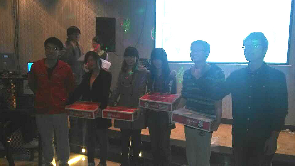 比赛一开始,大家就表现出很大的热情。特别是”你划我猜”这一项目最为热闹,比划者使出浑身解数,努力用最好的,最简单的方法来表现自己所要表达的词语,而猜词者则也在绞尽脑汁的去猜想。他们的搞笑动作以及那些搞笑的回答引得现场人员不断的捧腹大笑。随着大家慢慢进入比赛状态,现场更加热闹起来,因此许多在场观众都现场组队,进行现场报名,热闹的氛围再一次达到高潮,不断爆发出欢乐的笑声,参赛者最后也都获得很好的分数。相对于这一项目,”心有灵犀”则显得较为安静,因为这一项目是通过出题者出题,参赛的两名选手从四个选项中选一项,来对比两人答案是否相同,所以参赛者需要回忆和思考,以便做出正确的选择。对于所出的题目,有的搭档是会心一笑,有的则犹豫不决。在一旁观看的人在揭晓答案时也表现出紧张的样子,都融入其中。在”我爱记歌词”的比赛场地也围拢着很多的人,这是三个项目中唯一一个四人可以同时参与的,气氛也很活跃,因为这是麦霸大显身手的时刻,四人静静聆听着歌曲,争取以最快时间回答出歌名。很快,两个小时过去了,比赛也接近了尾声,也到了大家最关注的阶段。当宣布获奖的组别时,全场爆发出快乐的欢呼声和热烈的掌声。