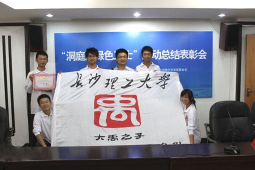 2010年7月10日,“洞庭湖绿色卫士”活动总结表彰大会在环保大厦隆重举行。本次表彰大会由湖南省环境保护宣传教育中心、WWF世界自然基金会、湖南省青少年发展基金会共同主办。出席会议的有来自主办方的各级领导,以及包括我校“大禹之子”青年志愿者协会在内的湖南省内各大高校10所获奖社团代表和指导老师。