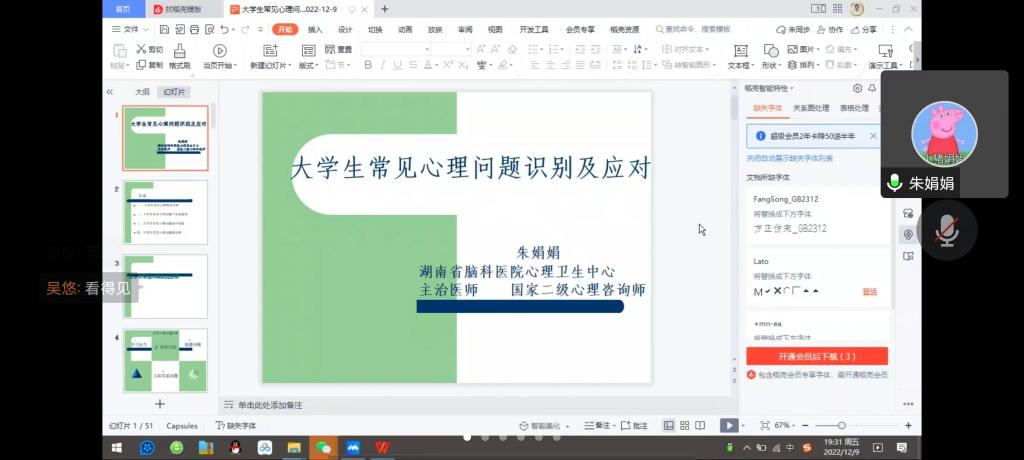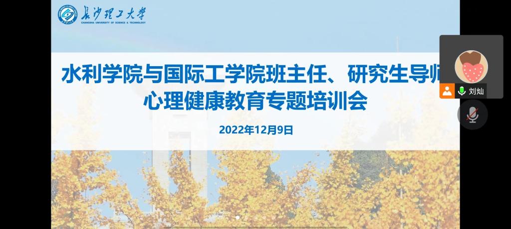 为进一步提高班主任、导师的心理健康教育的能力和水平,129日晚,水利学院和国际工学院依托腾讯会议平台共同开展班主任、导师心理健康知识培训,邀请了湖南省第二人民医院心理卫生中心主治医生朱娟娟主讲。水利学院和国际工学院全体班主任、导师、辅导员参加了此次培训,此次培训由水利学院心理辅导员刘灿主持。