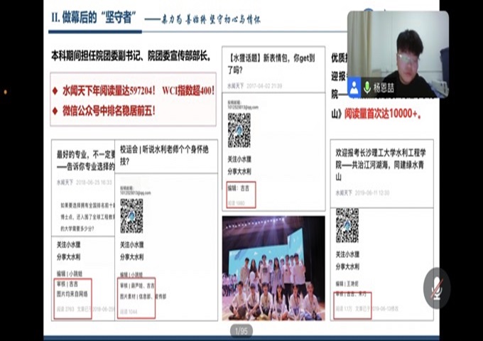 为推进研究生新生的精神文明建设,汲取榜样力量,书写奋斗青春。9月23日—9月25日19:00,水利学院在线上开展2023年研究生新生教育之水润讲坛,水利学院2023级全体研究生参加,由水利与环境工程学院2019级本科生唐佳、2020级研究生杨恩喆、2020级博士生陈帮进行线上授课。