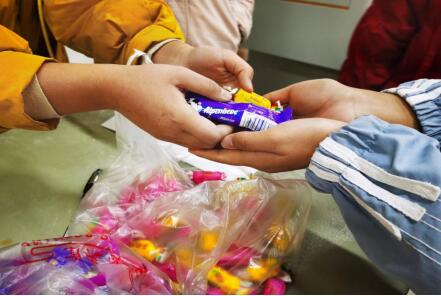 在主持人谭梦阳满怀热情的激励和美好的祝愿后,寒衣发放活动正式开始。寒棉衣样式多且新颖,同学们根据个人喜好进行挑选、试穿,勤工助学部的学生干部们积极地为同学服务,将工作落到实处。此外,学院还为各位同学们准备了糖果,糖果虽小,却代表了学院的一份情,一份暖,一份祝福,希望同学们的生活会像糖果一样甜蜜。