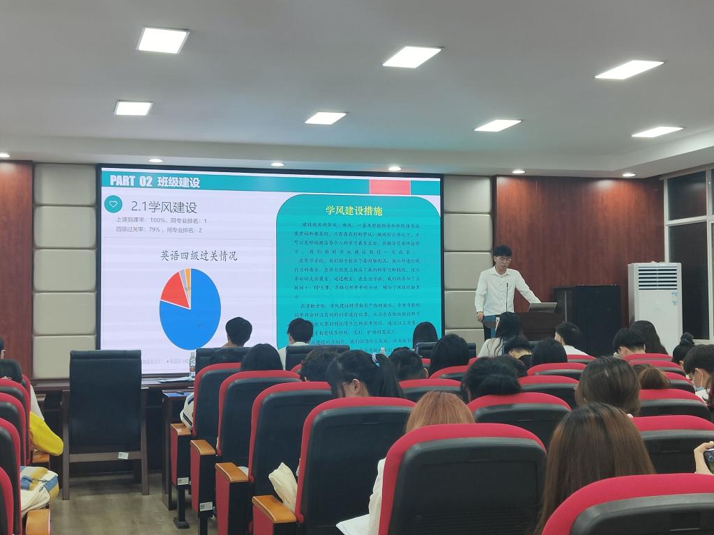 经过班级积极申请,学院严格筛选,共推选出19、20、21级共10个班级参加“先进班集体”立项答辩会议。汇报人根据班级情况、学风建设、宿舍管理、文体活动、党团建设、科技创新等方面介绍了上一学年班级取得的优异成绩。各班代表信心十足,用精美的PPT、幽默独特的语言风格展现班级富有活力的一面,力图将最精彩、最青春的班级风采展现出来。