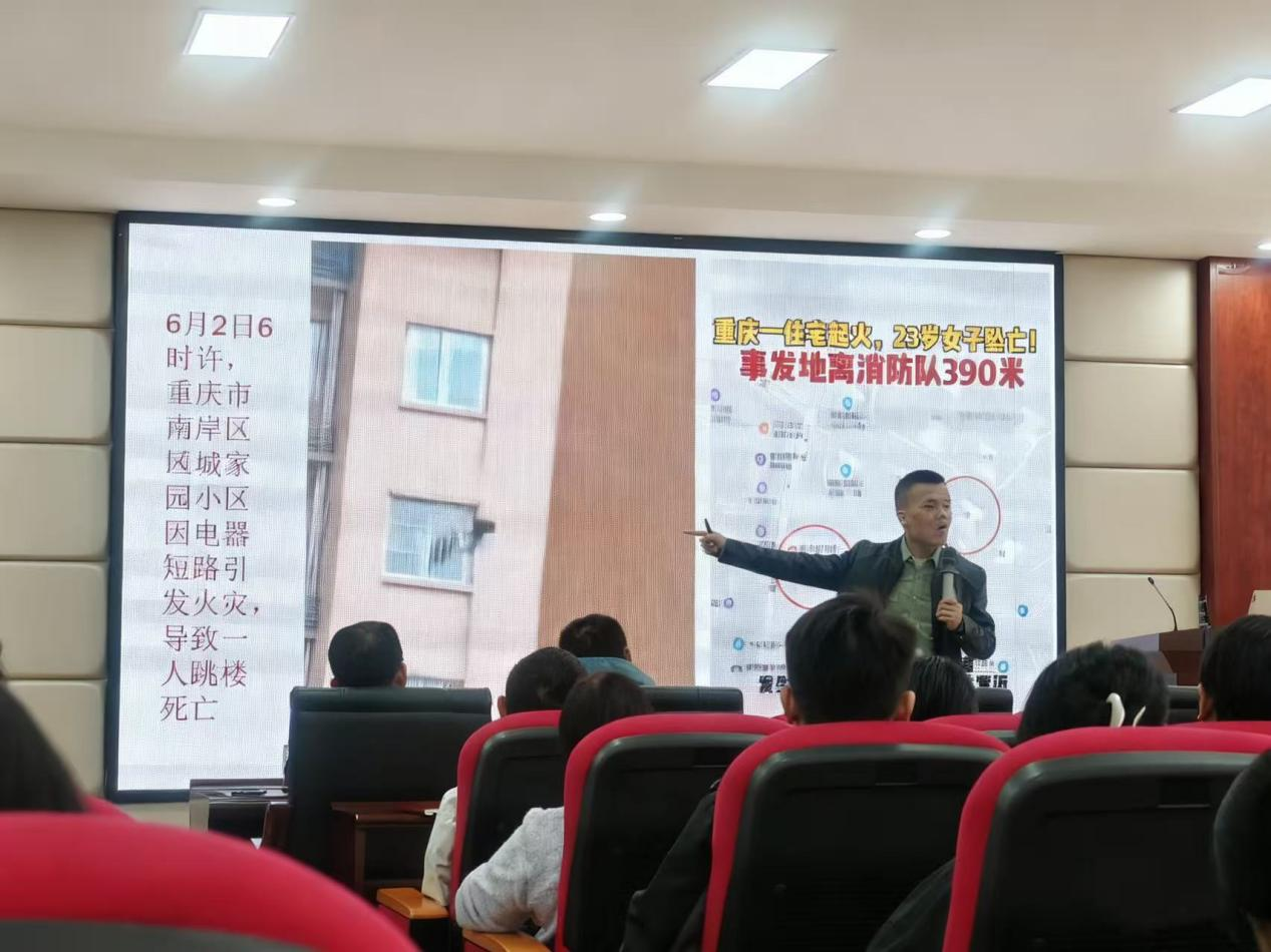 为切实增强全院师生消防安全意识,提升火灾应急处置与自救互救能力,11月11日14:00,食品与生物工程学院在工科三号楼A320举办消防安全知识培训讲座。本次讲座特邀曾灿教官担任主讲,全院教职工及学生骨干参与培训。