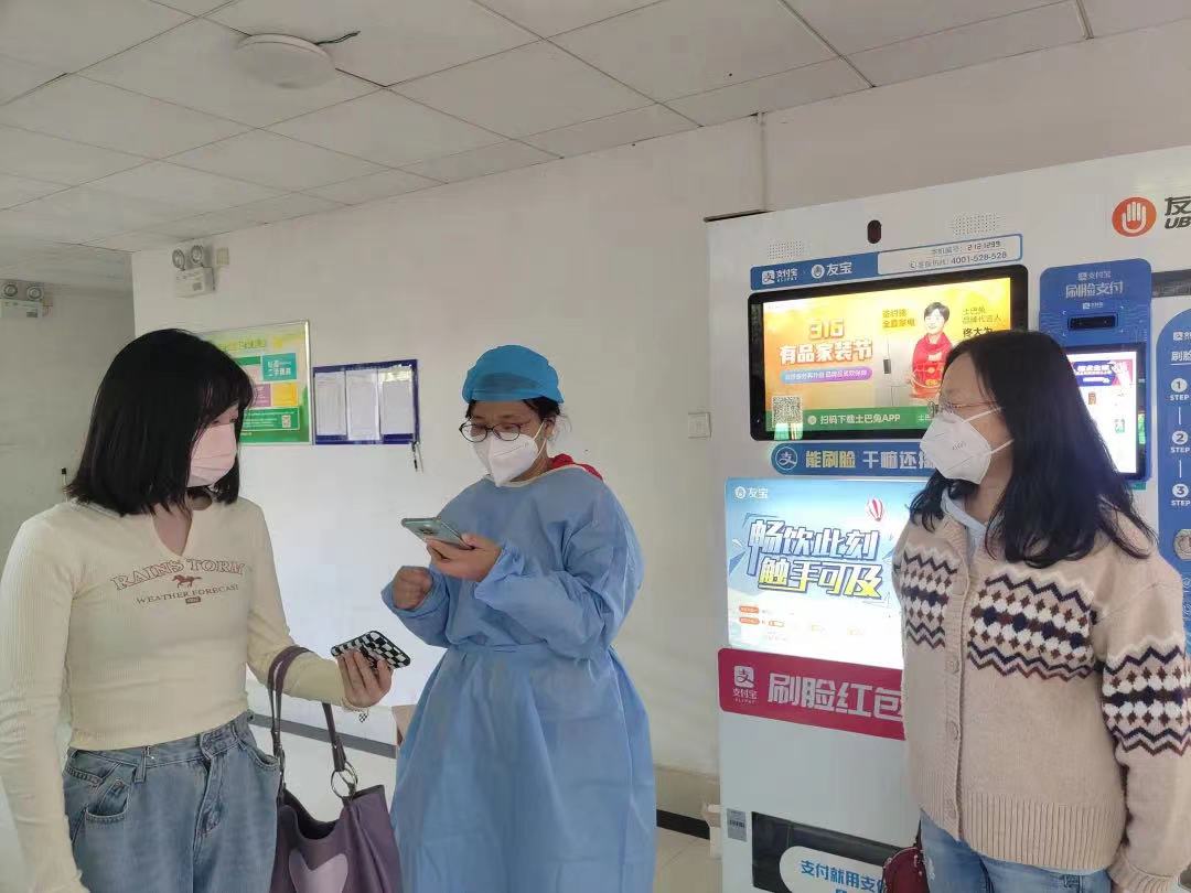 “同学,做核酸检测请先在左边排队,提前打开湖南省健康码进行信息采集,然后请移步右边按序号排队完成检测。”