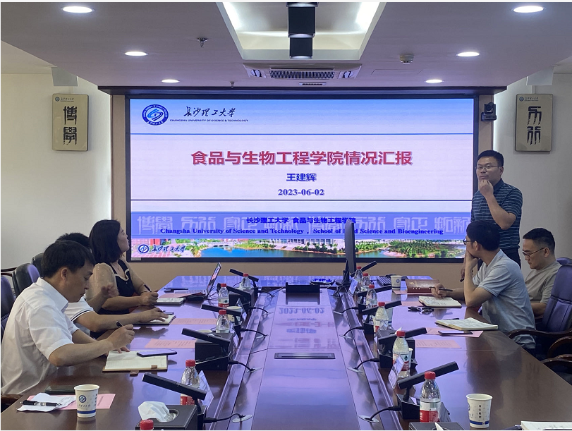 食品与生物工程学院党总支书记王建辉详细介绍了学院历史沿革、专业设置及学位点建设、教学科研成果及学院特色研究方向,特别是在预制菜、淡水鱼、稻米、鲜湿米粉等极具特色领域的情况。